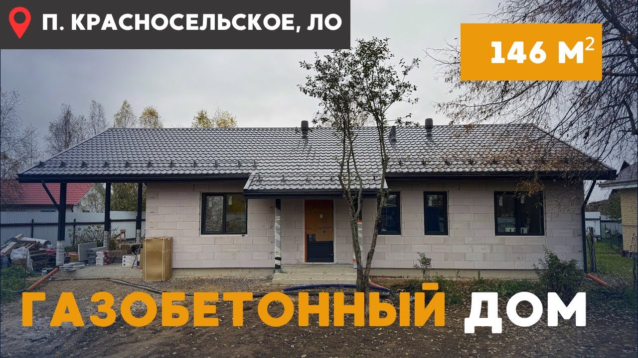 Близь прекрасных озер Выборгского р-на, в посёлке Красносельское, по концепции проекта К122, нашей компанией построен одноэтажный газобетонный дом 🏠 расчетной площадью 📐 146кв. м.
